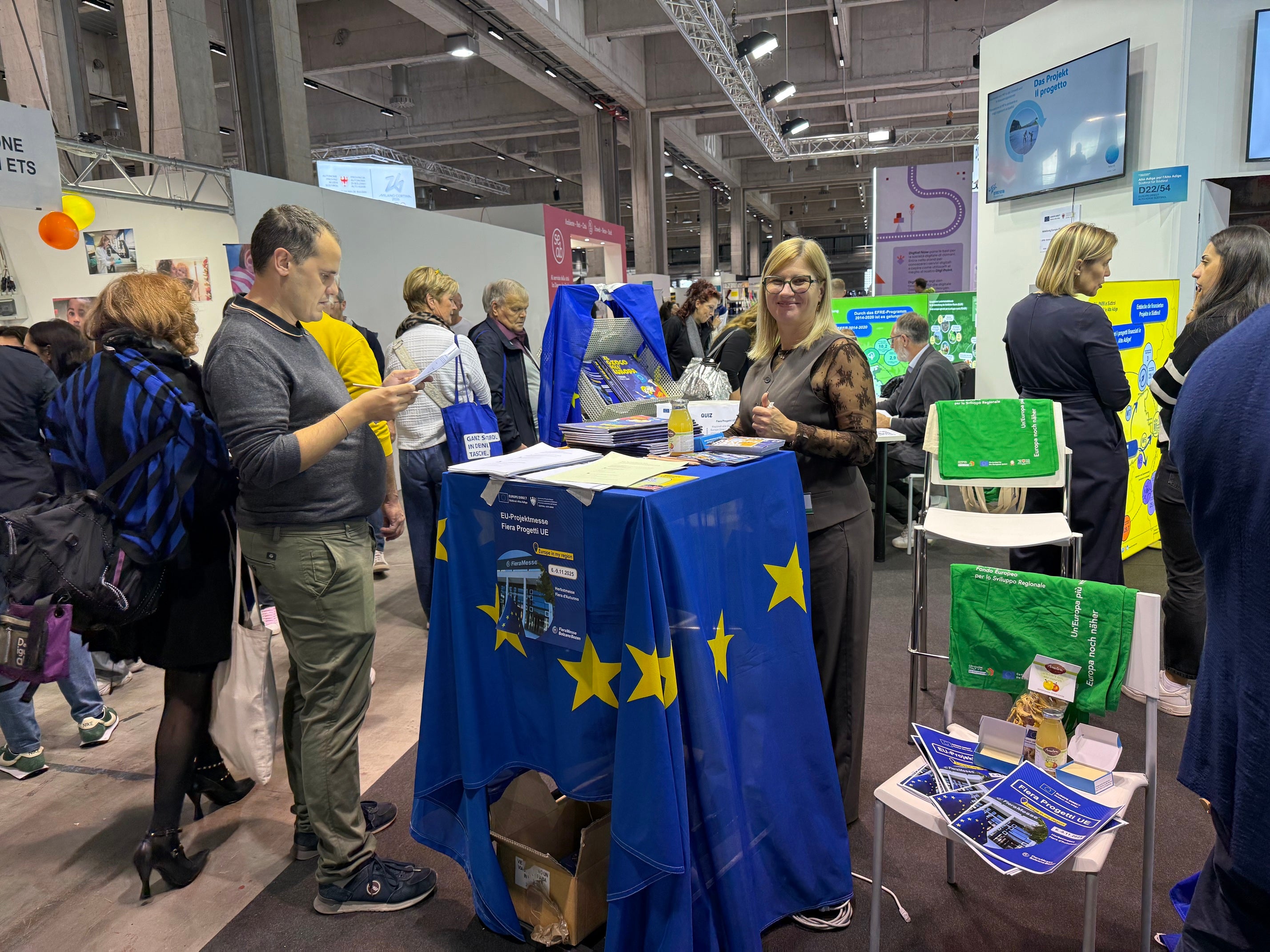 Europe Direct della Ripartizione Europa, in collaborazione con la Ripartizione Agricoltura, ha presentato 14 progetti realizzati grazie ai finanziamenti europei. Alla Fiera d’Autunno di Bolzano, i visitatori hanno potuto incontrare direttamente i beneficiari dei progetti, che hanno messo a disposizione uno spazio espositivo per raccontare la propria esperienza. In Alto Adige, i programmi europei mobilitano centinaia di milioni di euro attraverso i fondi FESR, FSE+, PNRR, FEASR e Interreg Italia-Austria e Italia-Svizzera. Un’occasione concreta per scoprire come l’Europa investe nel futuro del territorio, promuovendo innovazione, inclusione e sviluppo locale.